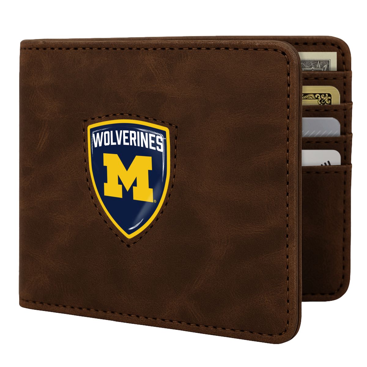 Michigan Wolverines Shield Wallet - Brown