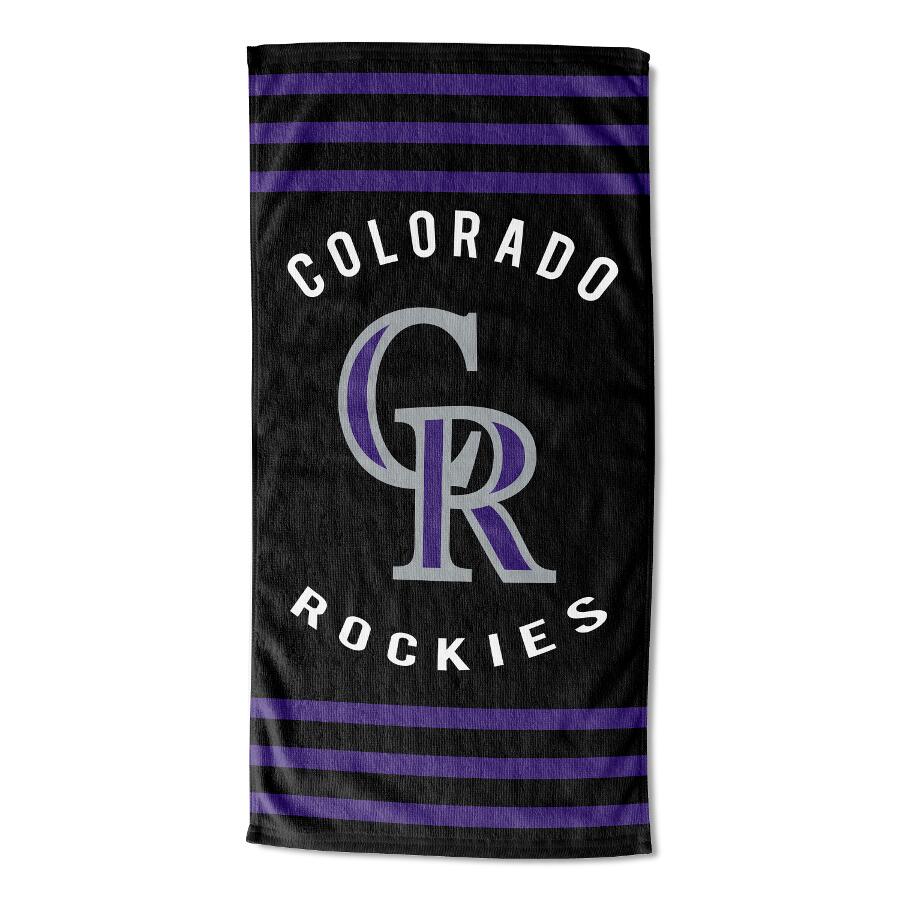 Rep your baseball team with this impressive and vivid Officially Licensed MLB "Stripes" Beach Towel by TheNorthwest. Designed around your favorite team, this absorbent 30"x 60" towel has your team’s logo and name in the center of the towel, laid out vertically with bold stripes above and below. No one will ever question who you’re rooting for when you’re drying off after a swim at the pool with this cotton-poly blend towel!