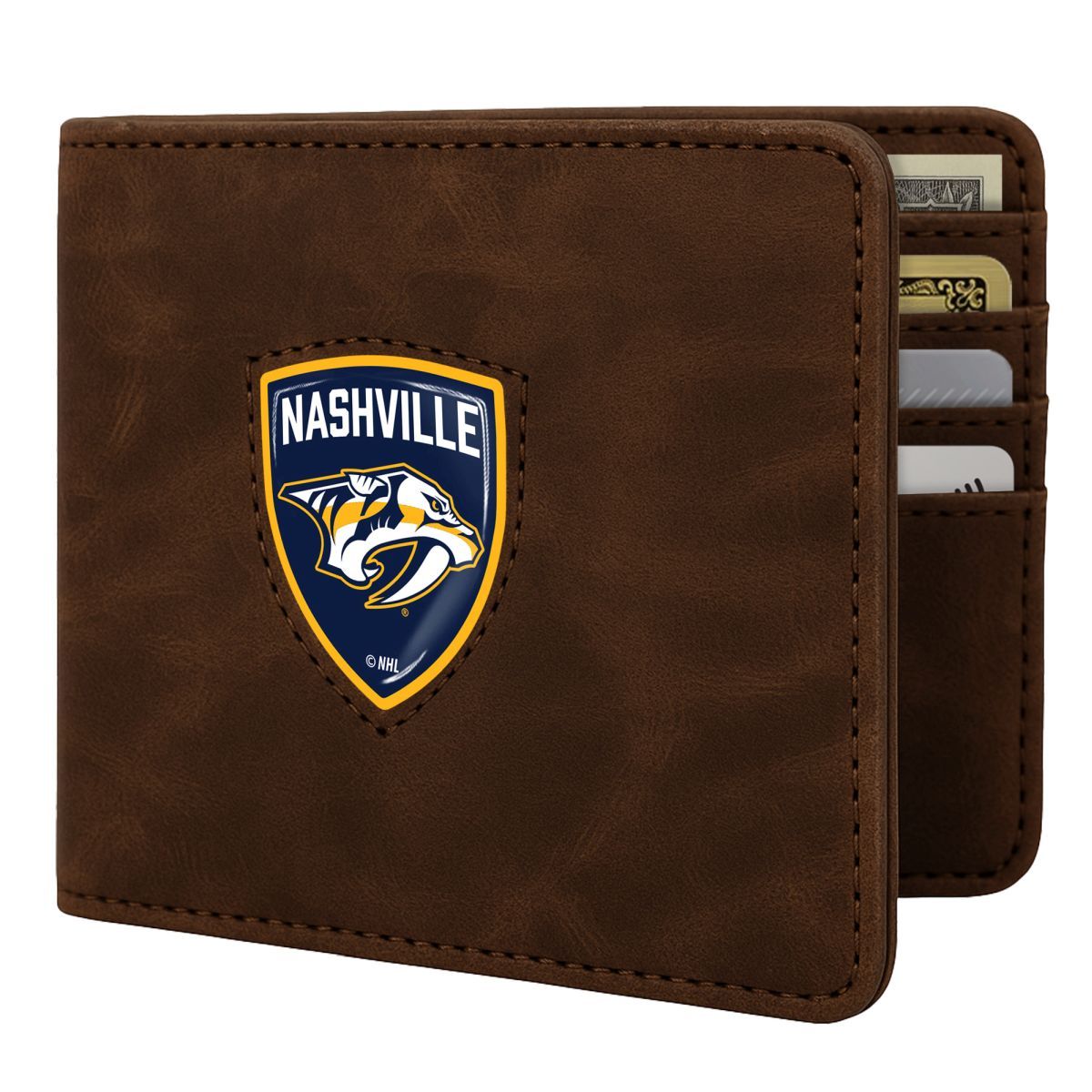 Carry your team pride wherever you go with the Shield Wallet, a sleek accessory that blends bold style with everyday function. Featuring an epoxy dome team shield on distressed vegan leather, this wallet delivers a premium look and feel. Built with RFID blocking technology, it helps protect your cards while offering smart organization with one large money pocket, two small inner pockets, and three card slots. Compact yet durable at 3.625” H x 4.5” W, it’s the perfect everyday wallet for fans who value security, style, and team spirit.