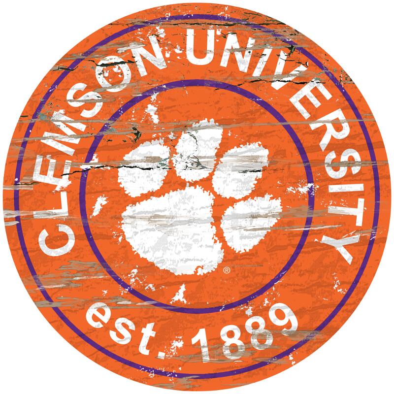 Enhance your space with our Distressed 24" Round Sign, a stunning circular piece that showcases your favorite team's name, established date, and logo. This eye-catching sign is designed in your team's colors and features a distressed wood pattern, adding a vintage and rustic touch to your decor. Made in the USA