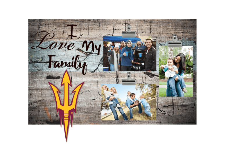 Our I Love My Family 11x19 Clip Frame is the perfect way to show your team spirit and love for your family at the same time. With a distressed wood look background and your favorite team's logo on the bottom left, this frame will add a touch of rustic charm to any room. The phrase "I Love My Family" is printed above the logo, making it a great gift for a loved one or a family member.