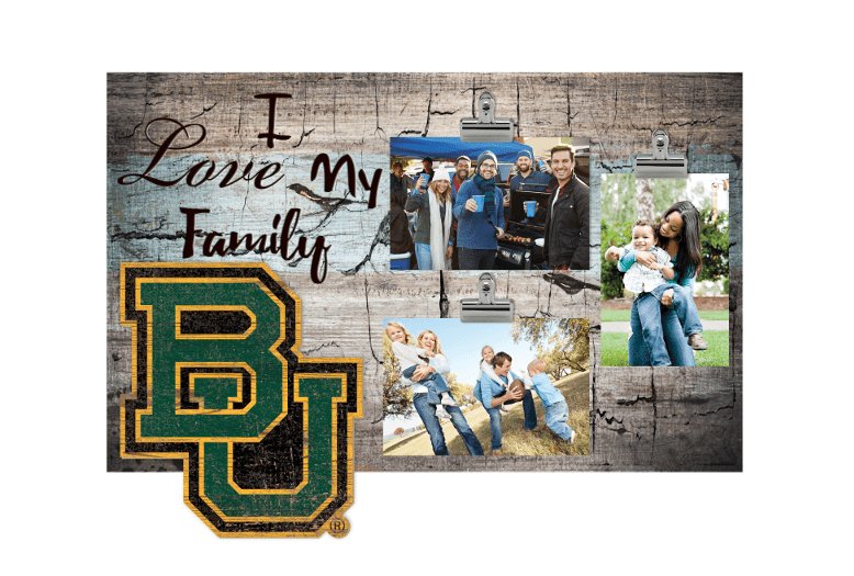 Our I Love My Family 11x19 Clip Frame is the perfect way to show your team spirit and love for your family at the same time. With a distressed wood look background and your favorite team's logo on the bottom left, this frame will add a touch of rustic charm to any room. The phrase "I Love My Family" is printed above the logo, making it a great gift for a loved one or a family member.