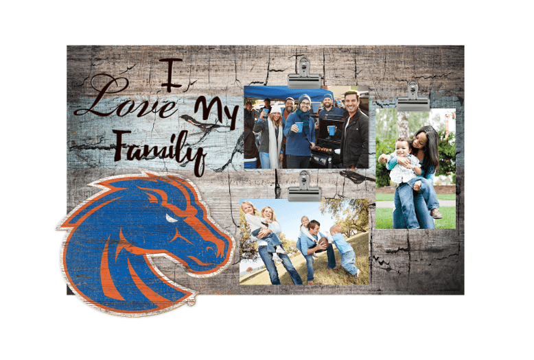 Our I Love My Family 11x19 Clip Frame is the perfect way to show your team spirit and love for your family at the same time. With a distressed wood look background and your favorite team's logo on the bottom left, this frame will add a touch of rustic charm to any room. The phrase "I Love My Family" is printed above the logo, making it a great gift for a loved one or a family member.
