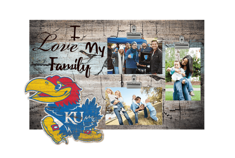 Our I Love My Family 11x19 Clip Frame is the perfect way to show your team spirit and love for your family at the same time. With a distressed wood look background and your favorite team's logo on the bottom left, this frame will add a touch of rustic charm to any room. The phrase "I Love My Family" is printed above the logo, making it a great gift for a loved one or a family member.