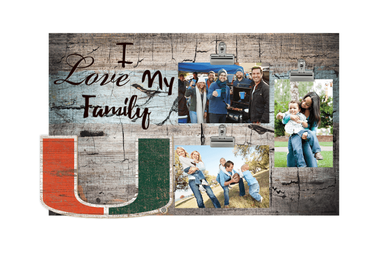 Our I Love My Family 11x19 Clip Frame is the perfect way to show your team spirit and love for your family at the same time. With a distressed wood look background and your favorite team's logo on the bottom left, this frame will add a touch of rustic charm to any room. The phrase "I Love My Family" is printed above the logo, making it a great gift for a loved one or a family member.