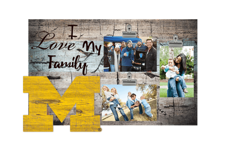 Our I Love My Family 11x19 Clip Frame is the perfect way to show your team spirit and love for your family at the same time. With a distressed wood look background and your favorite team's logo on the bottom left, this frame will add a touch of rustic charm to any room. The phrase "I Love My Family" is printed above the logo, making it a great gift for a loved one or a family member.