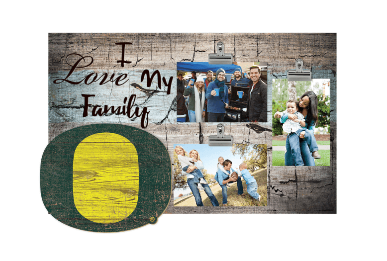Our I Love My Family 11x19 Clip Frame is the perfect way to show your team spirit and love for your family at the same time. With a distressed wood look background and your favorite team's logo on the bottom left, this frame will add a touch of rustic charm to any room. The phrase "I Love My Family" is printed above the logo, making it a great gift for a loved one or a family member.