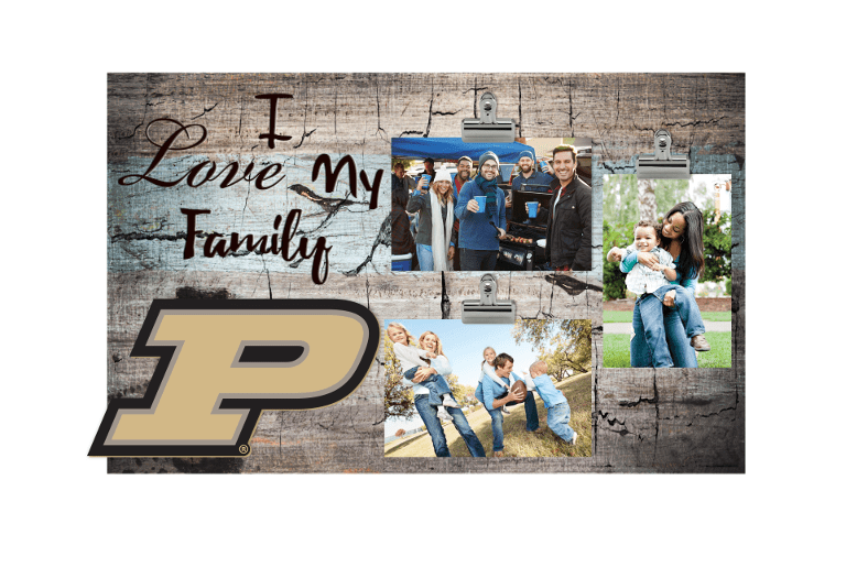 Our I Love My Family 11x19 Clip Frame is the perfect way to show your team spirit and love for your family at the same time. With a distressed wood look background and your favorite team's logo on the bottom left, this frame will add a touch of rustic charm to any room. The phrase "I Love My Family" is printed above the logo, making it a great gift for a loved one or a family member.