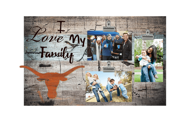 Our I Love My Family 11x19 Clip Frame is the perfect way to show your team spirit and love for your family at the same time. With a distressed wood look background and your favorite team's logo on the bottom left, this frame will add a touch of rustic charm to any room. The phrase "I Love My Family" is printed above the logo, making it a great gift for a loved one or a family member.