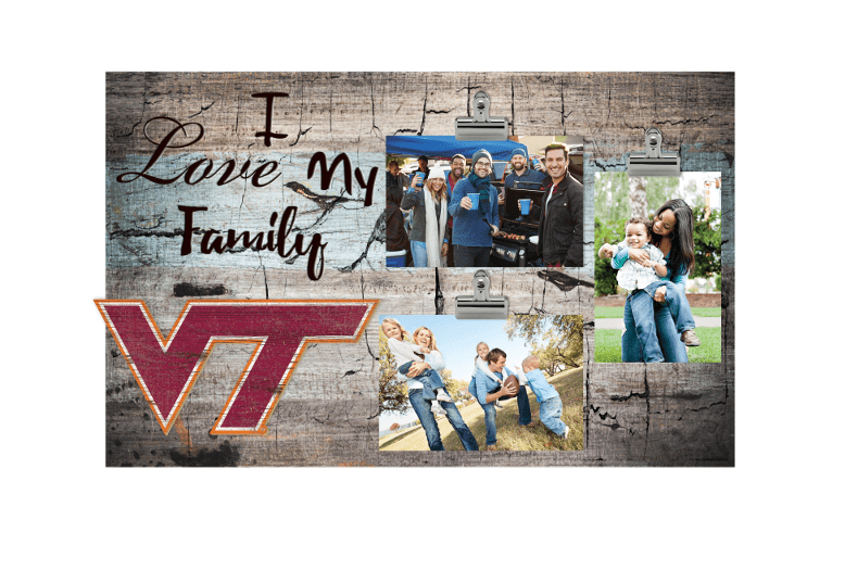 Our I Love My Family 11x19 Clip Frame is the perfect way to show your team spirit and love for your family at the same time. With a distressed wood look background and your favorite team's logo on the bottom left, this frame will add a touch of rustic charm to any room. The phrase "I Love My Family" is printed above the logo, making it a great gift for a loved one or a family member.