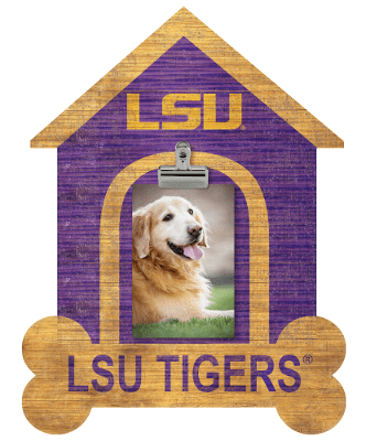 Elevate your pet's photos with our Dog Bone House Clip Frame. This 16" clip frame is shaped like a dog house in your favorite team's colors, featuring a dog bone on the bottom with your team's name. The frame includes a convenient clip to hang a picture of your beloved pet right in the middle. The rustic and distressed wood design adds a charming touch to the overall aesthetic.