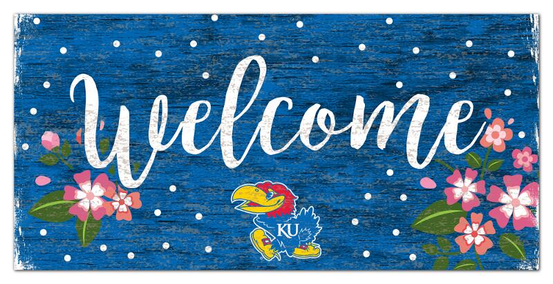 Kansas Jayhawks Welcome Floral 6x12 Sign