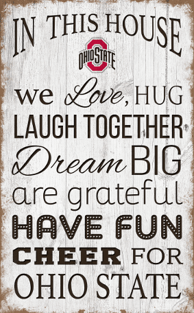 Show off your team spirit with the In This House 11x19 wall decor. Cut and printed on MDF, this sign is perfect to hang on any wall in your home or office. With its bold lettering and team colors, it's sure to make a statement and let everyone know which team you support.