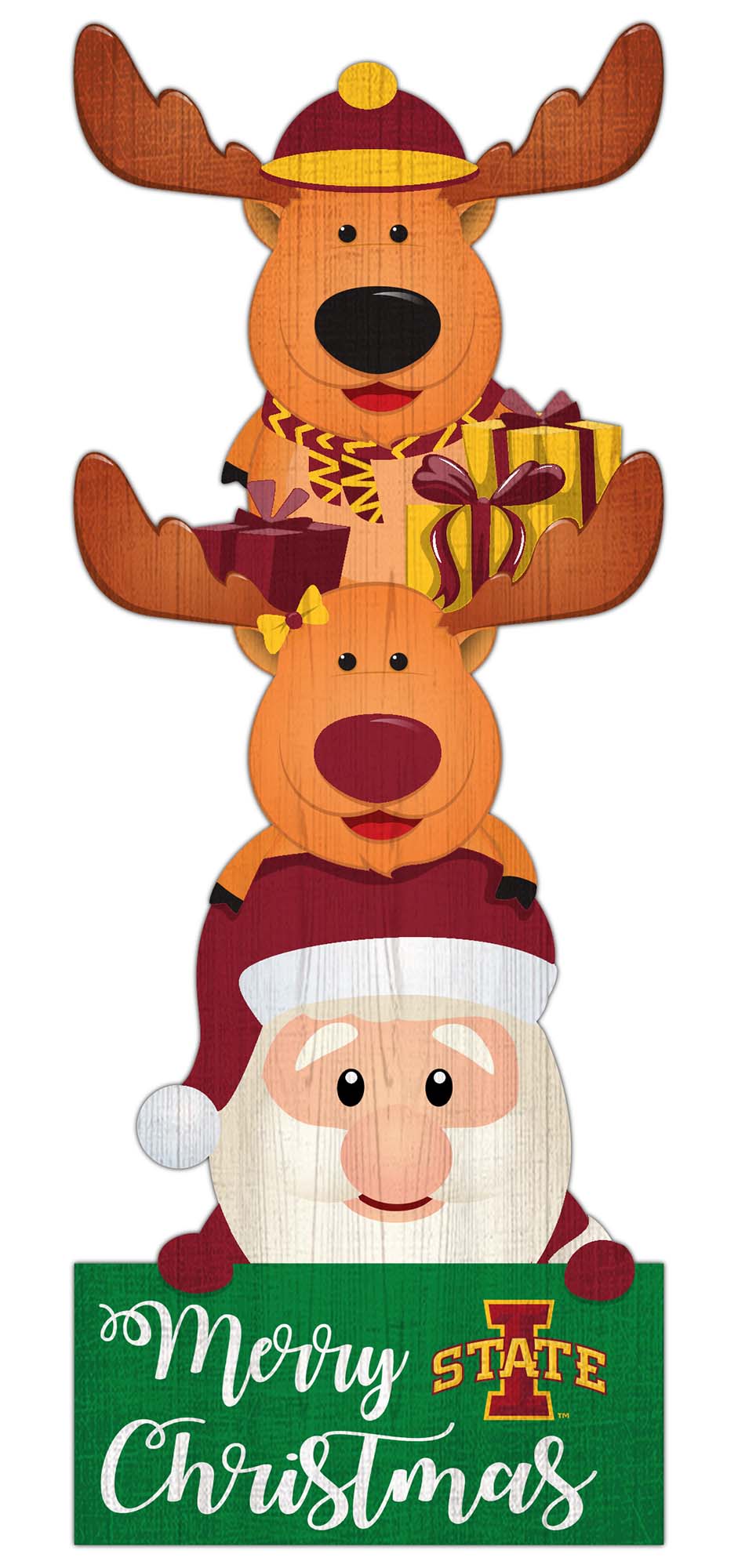 Get into the holiday spirit with our Santa Stack 31in Leaner! This 31" piece is cut and printed to represent a stack of Santa and his reindeer with the phrase "Merry Christmas" at the bottom, all in your favorite team's colors and with your team's logo. Cut and printed on MDF, Made in the USA