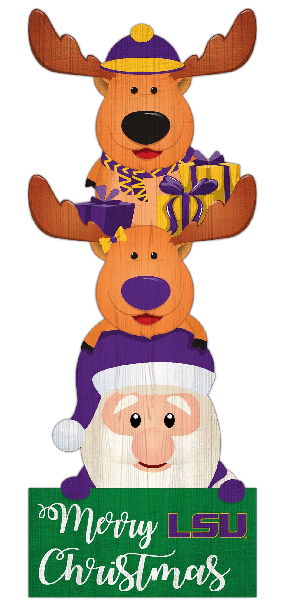 Get into the holiday spirit with our Santa Stack 31in Leaner! This 31" piece is cut and printed to represent a stack of Santa and his reindeer with the phrase "Merry Christmas" at the bottom, all in your favorite team's colors and with your team's logo. Cut and printed on MDF, Made in the USA