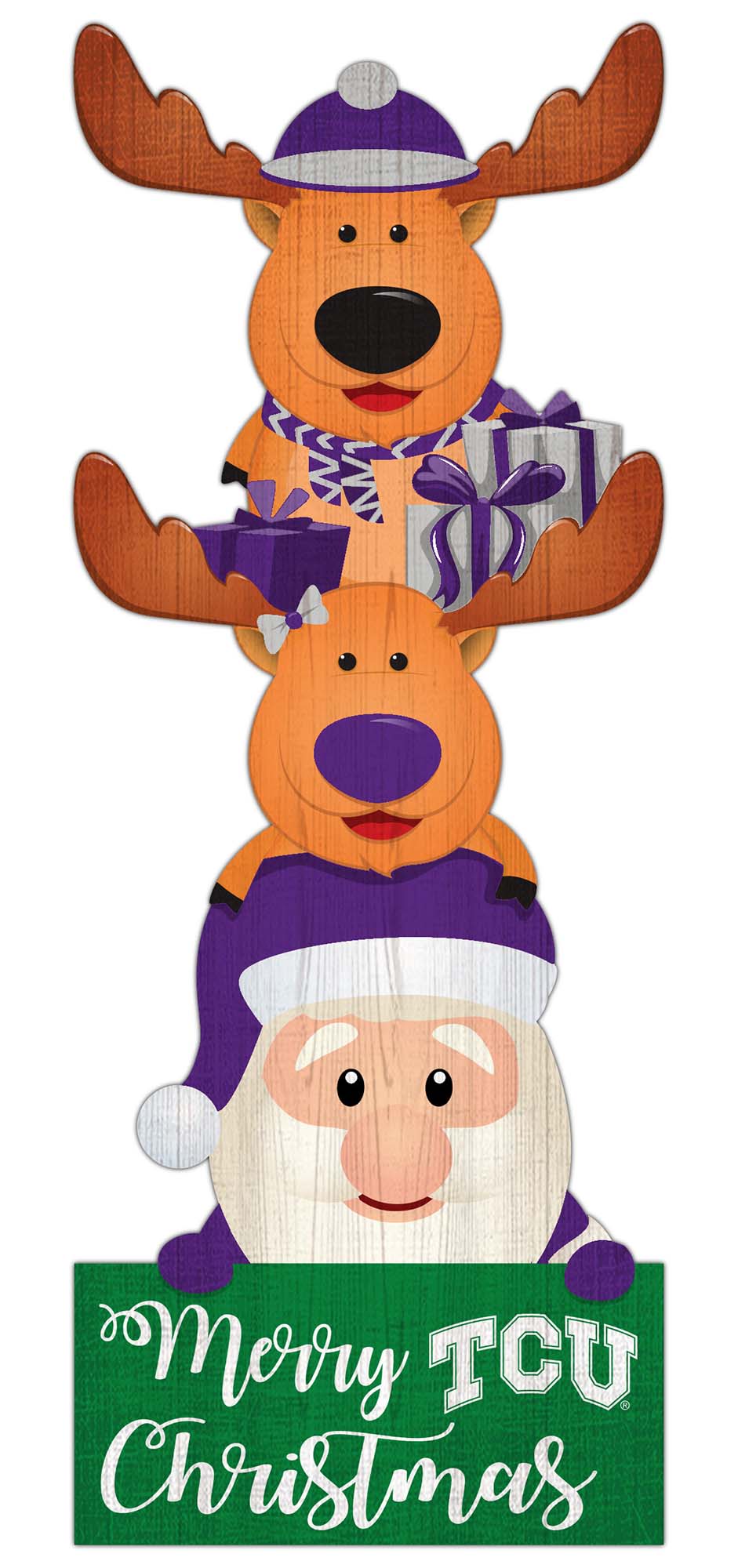Get into the holiday spirit with our Santa Stack 31in Leaner! This 31" piece is cut and printed to represent a stack of Santa and his reindeer with the phrase "Merry Christmas" at the bottom, all in your favorite team's colors and with your team's logo. Cut and printed on MDF, Made in the USA