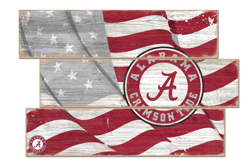 Here's a great way to display your fan loyalty with this cool three plank wall sign by Fan Creations wth your team's logo and the American Flag! Digitally printed on Medium Density Fibreboard (MDF), it features three individual 6" x 24" panels and a distressed white background with team logos, team name and date established. Proudly hang it in the office, the game room or man cave.