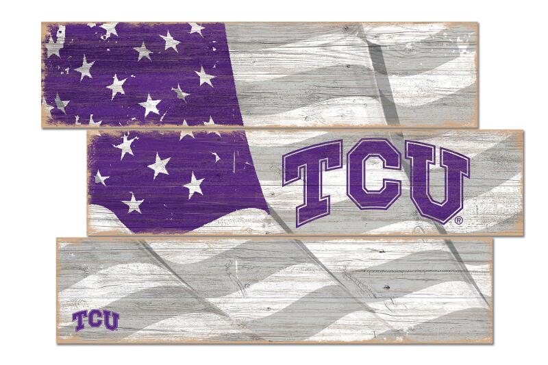 Here's a great way to display your fan loyalty with this cool three plank wall sign by Fan Creations wth your team's logo and the American Flag! Digitally printed on Medium Density Fibreboard (MDF), it features three individual 6" x 24" panels and a distressed white background with team logos, team name and date established. Proudly hang it in the office, the game room or man cave.