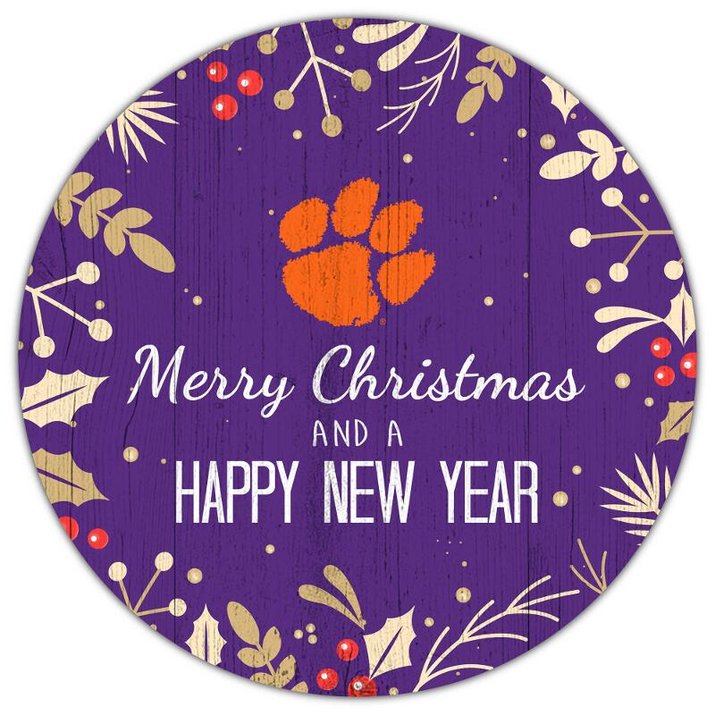 Clemson Tigers Merry Christmas & New Year 12in Circle