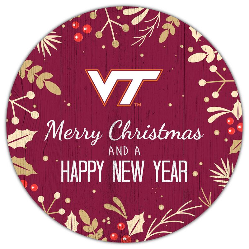 Virginia Tech Hokies Merry Christmas & New Year 12in Circle