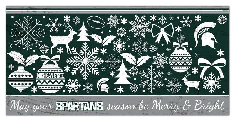 Michigan State Spartans Merry and Bright 6x12 Sign