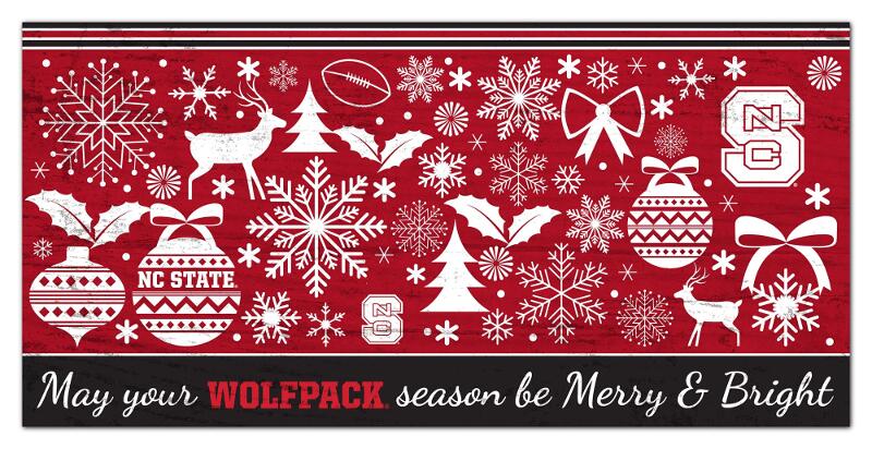 North Carolina State Wolfpack Merry and Bright 6x12 Sign