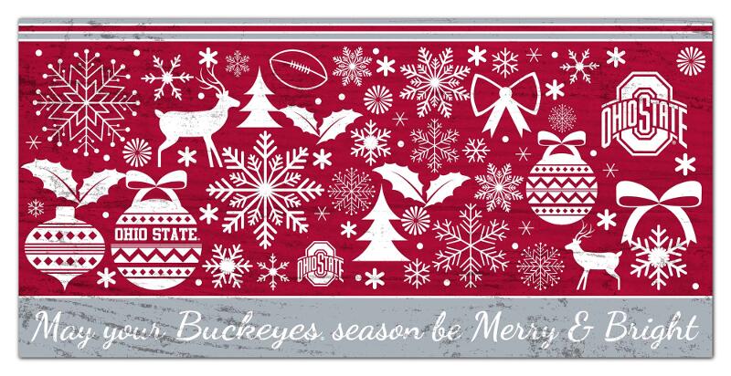 Ohio State Buckeyes Merry and Bright 6x12 Sign