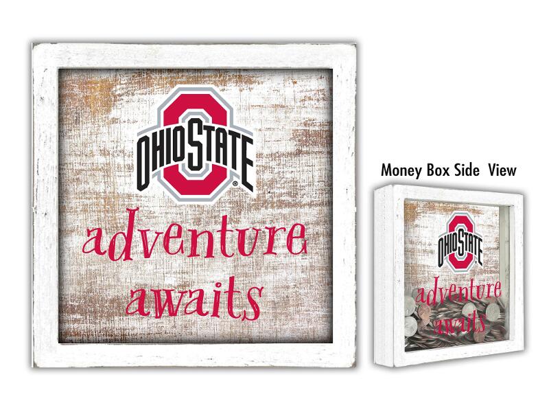The Adventure Awaits Money Box is a stylish way to save up for your next adventure while showing off your team pride. This money box features your favorite team's logo and the phrase "Adventure Awaits" below it, making it a perfect addition to your desk or countertop. Cut and printed on durable MDF and acrylic materials, Printed and assembled in the USA