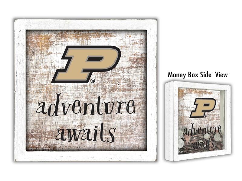 The Adventure Awaits Money Box is a stylish way to save up for your next adventure while showing off your team pride. This money box features your favorite team's logo and the phrase "Adventure Awaits" below it, making it a perfect addition to your desk or countertop. Cut and printed on durable MDF and acrylic materials, Printed and assembled in the USA