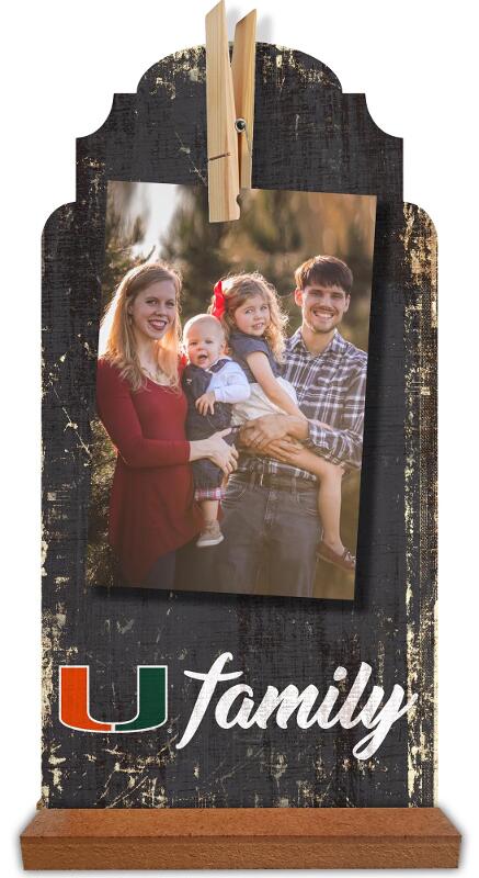 Display your family memories with this 6x12 piece that features your favorite team's logo and a clip above it to hang your photo. The bottom of the piece says "Family" with your team's logo beside it. Cut and printed on MDF, Made in the USA