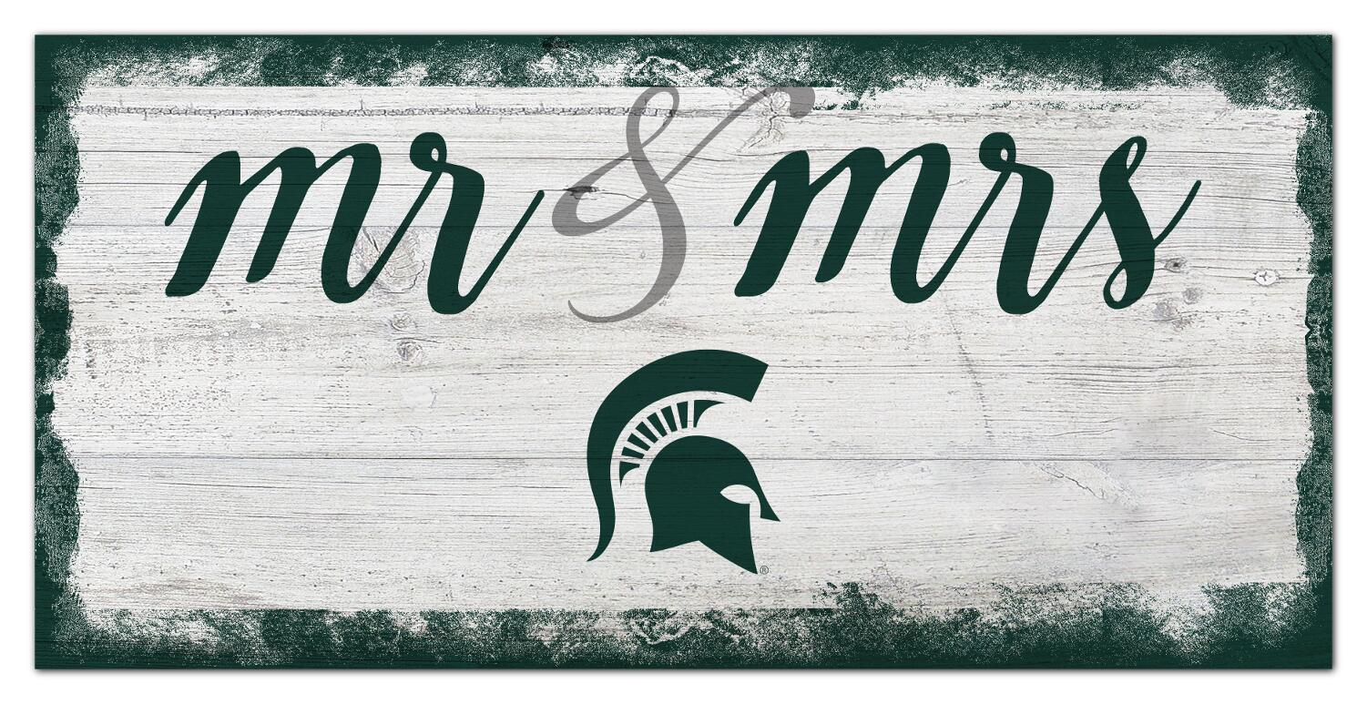 Michigan State Spartans Script Mr & Mrs 6x12 Sign