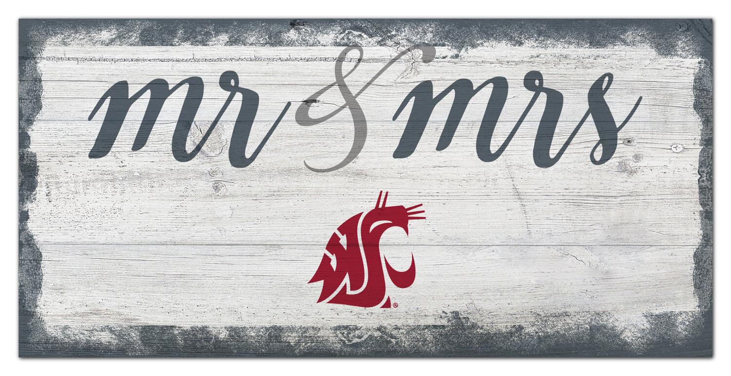 Washington State Cougars Script Mr & Mrs 6x12 Sign