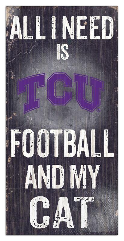 TCU Horned Frogs Football and My Cat 6x12 Sign