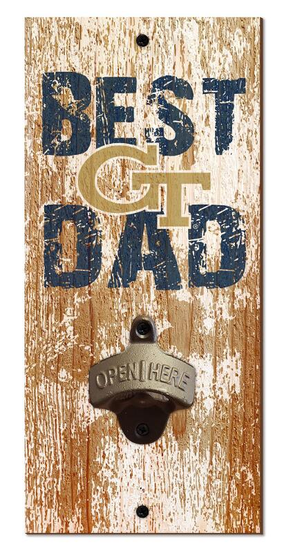 Georgia Tech Yellow Jackets Best Dad Bottle Opener Wood Sign