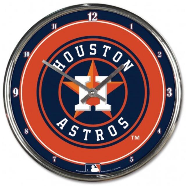 This 12 inch plated clock is both a retro classic and a trendy find for a wall clock.  Stunning graphics with a metal hands make a great fit in any fan cave, office, bar, or bedroom.  Printed and assembled in the US with imported materials. Made by Wincraft.