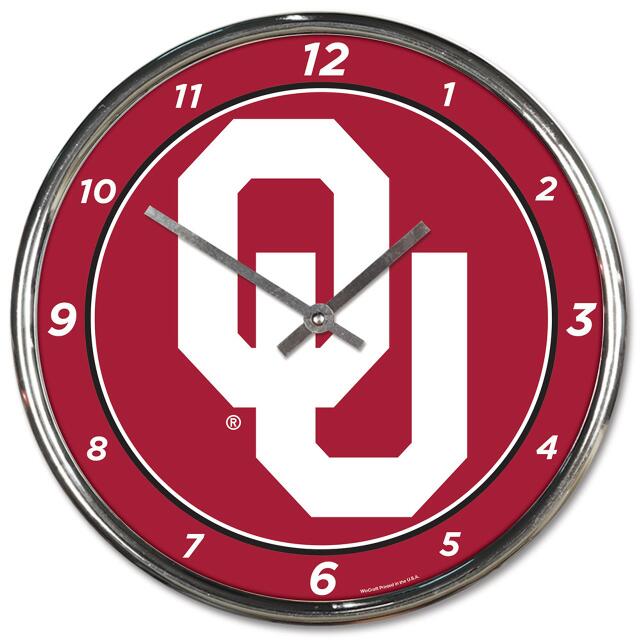 Oklahoma Sooners Round Chrome Wall Clock