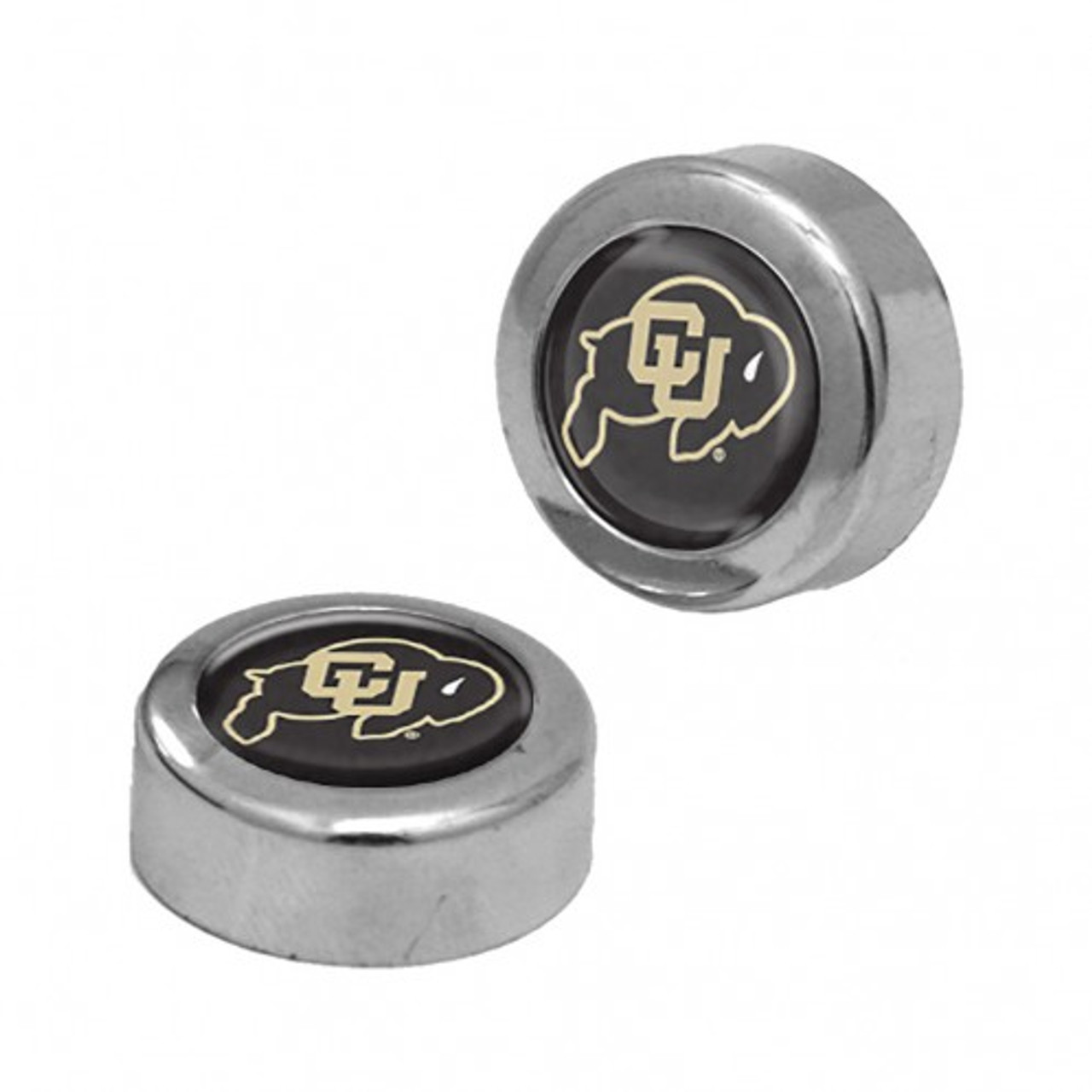 Two piece license plate frame screw caps imprintedc with team colors. Comes with two clear connecting washers. Does not include screws. Made by Wincraft.