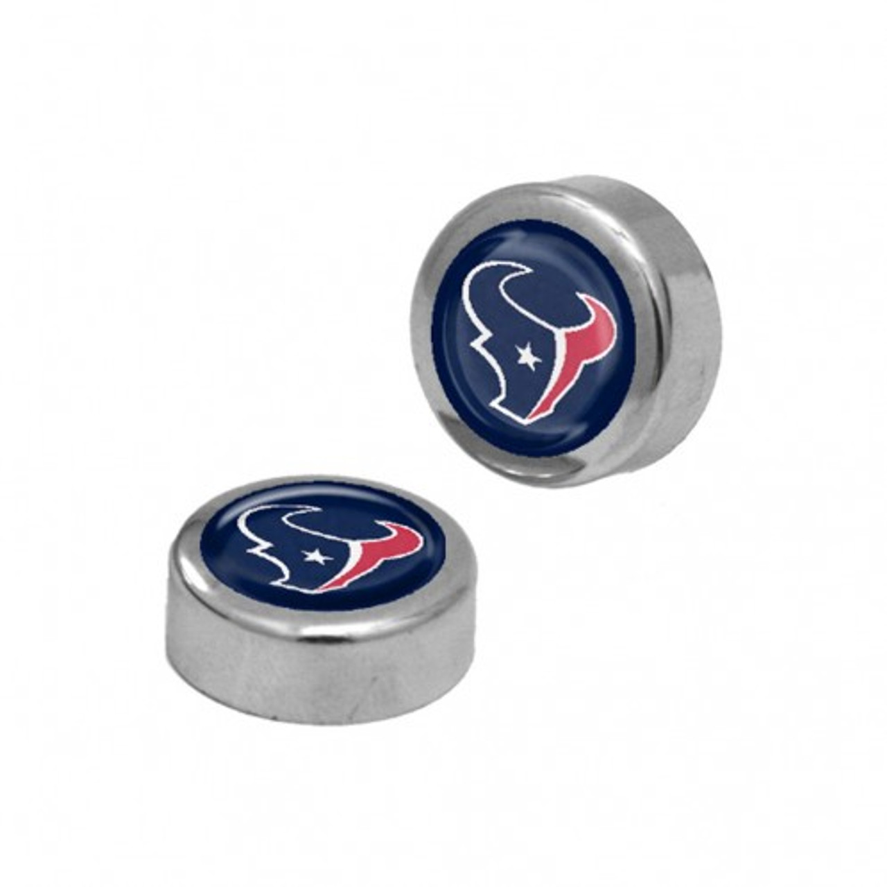 Two piece license plate frame screw caps imprintedc with team colors. Comes with two clear connecting washers. Does not include screws. Made by Wincraft.