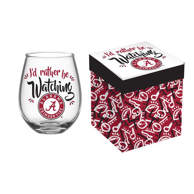 Alabama Crimson Tide Glass 17oz Wine Stemless Boxed