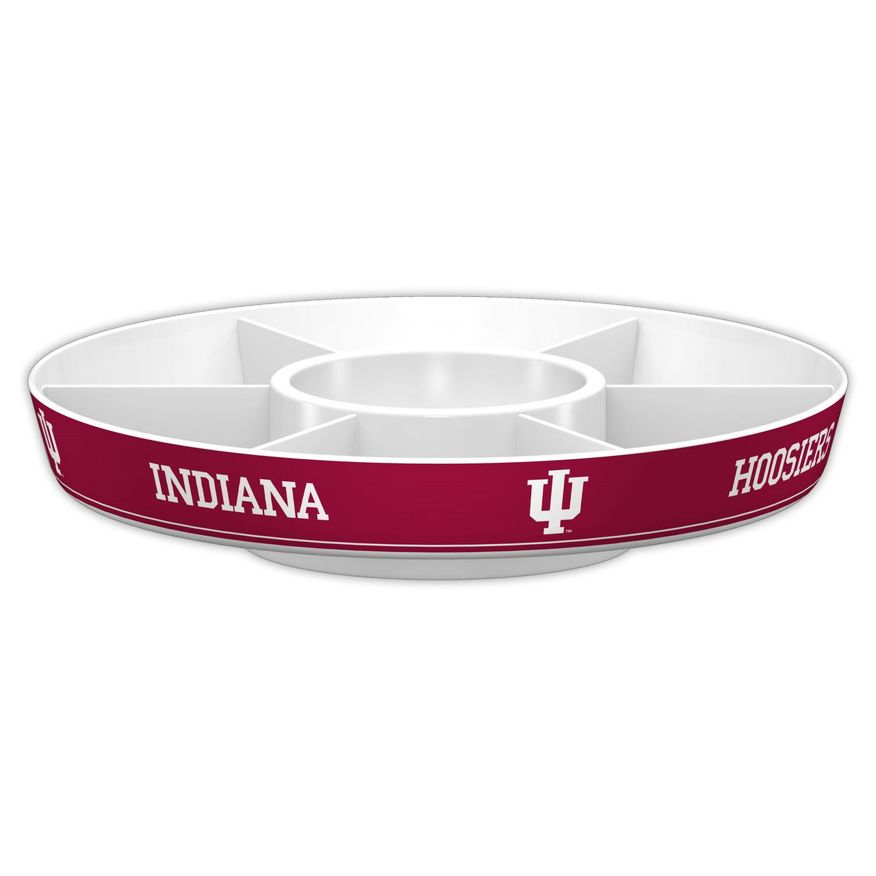 Snack in spirited style with this versatile Party Platter! Bright and bold 14 1/2" dia. melamine platter features your favorite football team graphics and colors and can be used alone or with custom dividers. Includes 6 removable dividers and a dipping bowl, so you can choose from 7 different serving configurations by simply sliding the slotted pieces together. Specify team. Hand wash with mild soap.