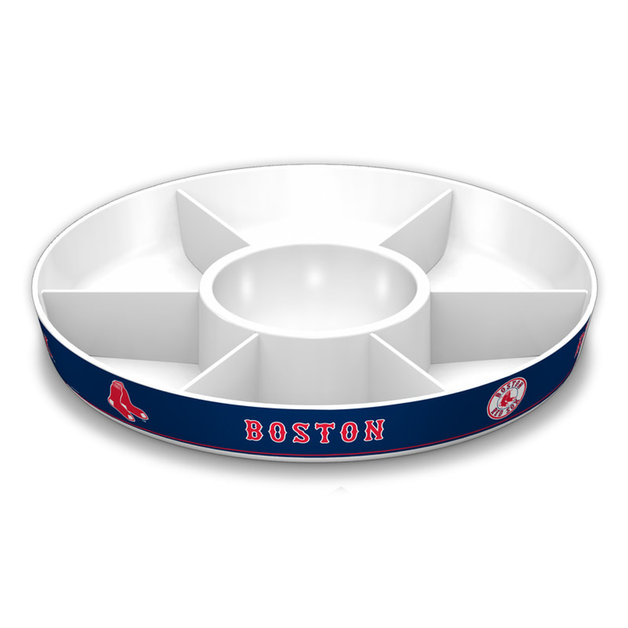 Snack in spirited style with this versatile Party Platter! Bright and bold 14 1/2" dia. melamine platter features your favorite football team graphics and colors and can be used alone or with custom dividers. Includes 6 removable dividers and a dipping bowl, so you can choose from 7 different serving configurations by simply sliding the slotted pieces together. Specify team. Hand wash with mild soap.