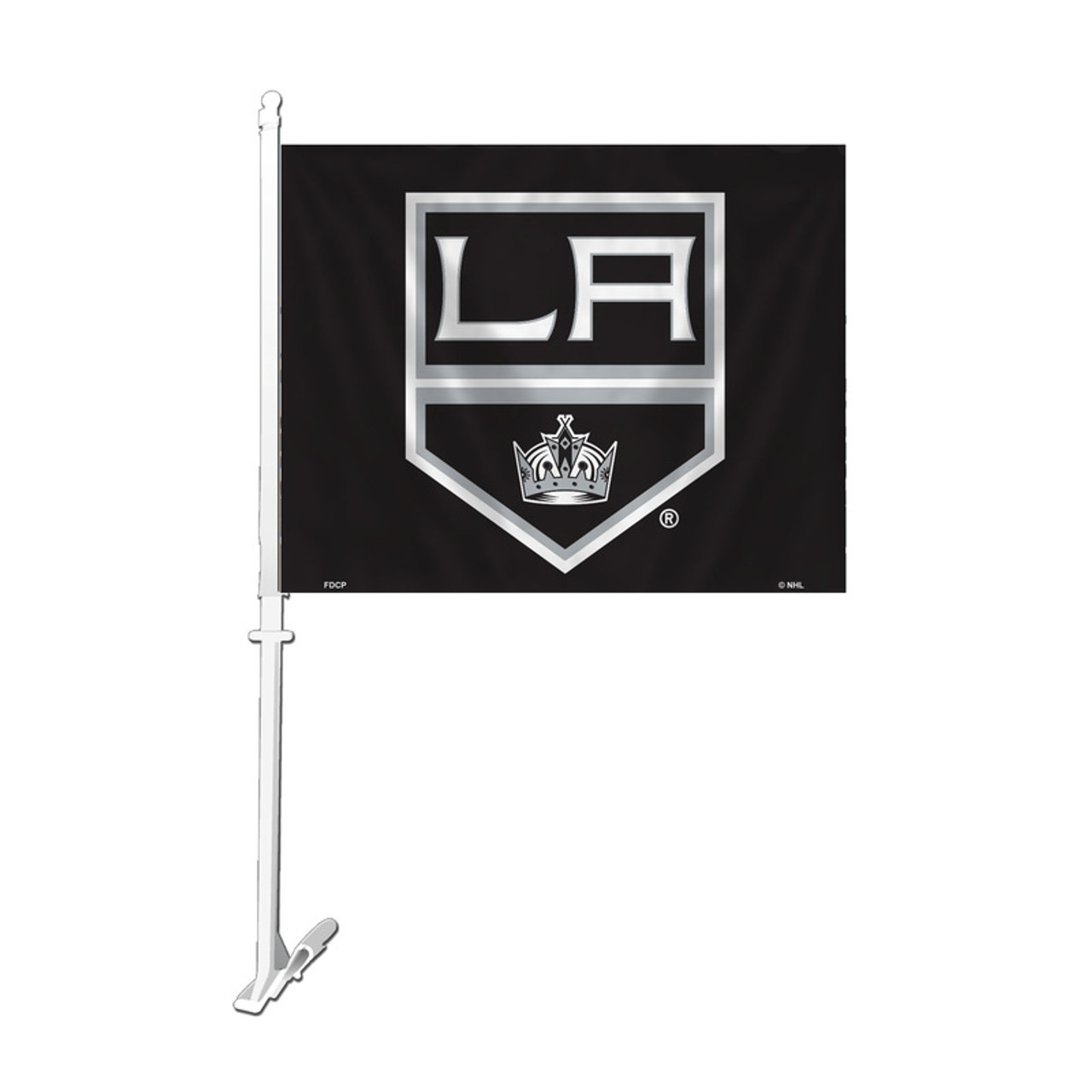 What a great way to show your team spirit. on your car! This easy to attach car flag has vibrant colors and features the team logo on both sides! The flag itself is 11"x15", and the pole is 20" long. Made with a sturdy nylon. Made By Fremont Die