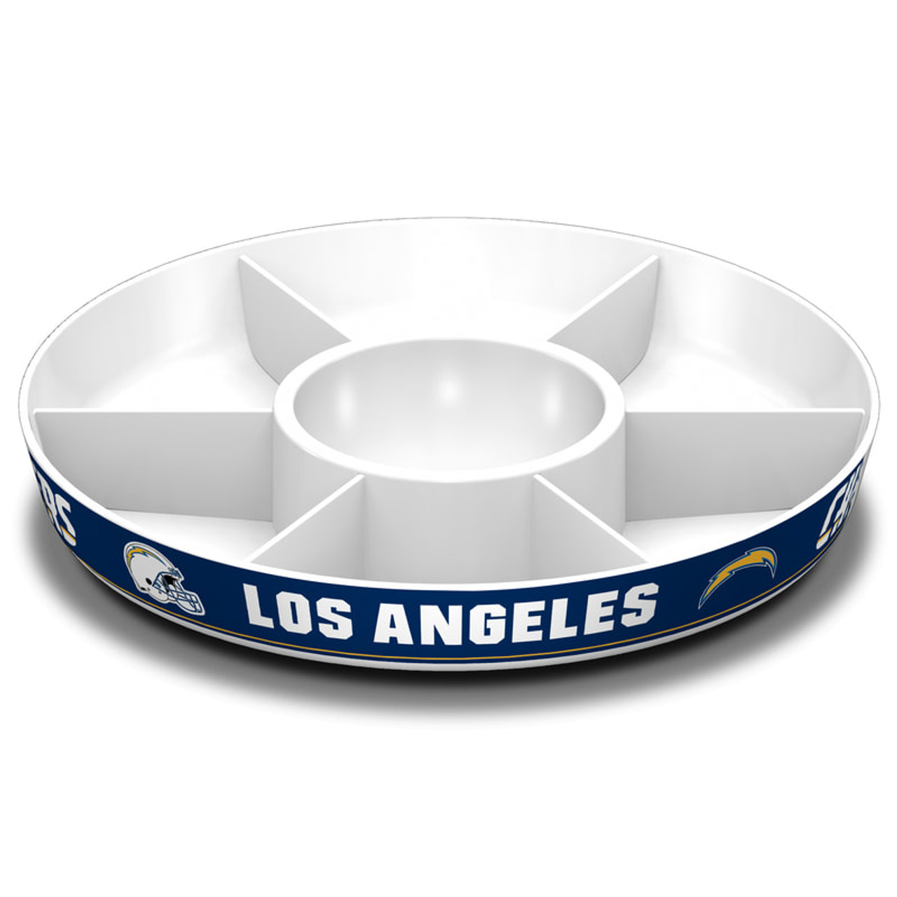Snack in spirited style with this versatile Party Platter! Bright and bold 14 1/2" dia. melamine platter features your favorite football team graphics and colors and can be used alone or with custom dividers. Includes 6 removable dividers and a dipping bowl, so you can choose from 7 different serving configurations by simply sliding the slotted pieces together. Specify team. Hand wash with mild soap.