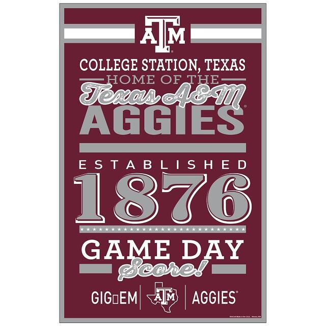 Texas A&M Aggies Sign 11x17 Wood Established Design