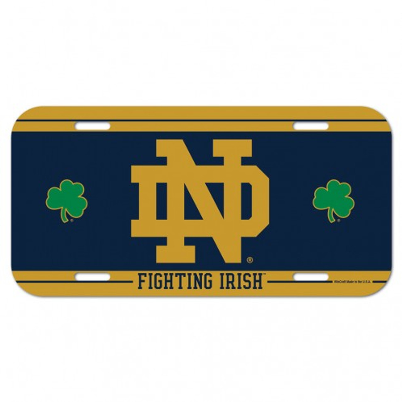 Notre Dame Fighting Irish License Plate Plastic Shamrocks Design