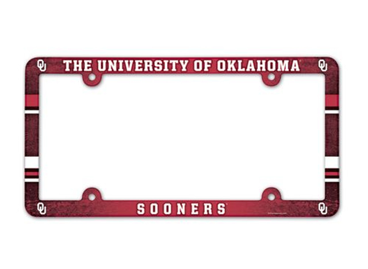 Full Color License Plate Frame that are usable as a fan decoration on the outside of a standard car license plate, front or back. The frame is molded in durable plastic and top surface printed with a durable ink on the entire top surface. The design maximizes space for tab sticker clearance, but you should still check the legalities of frames in your state. Made in USA. Made By Wincraft, Inc.