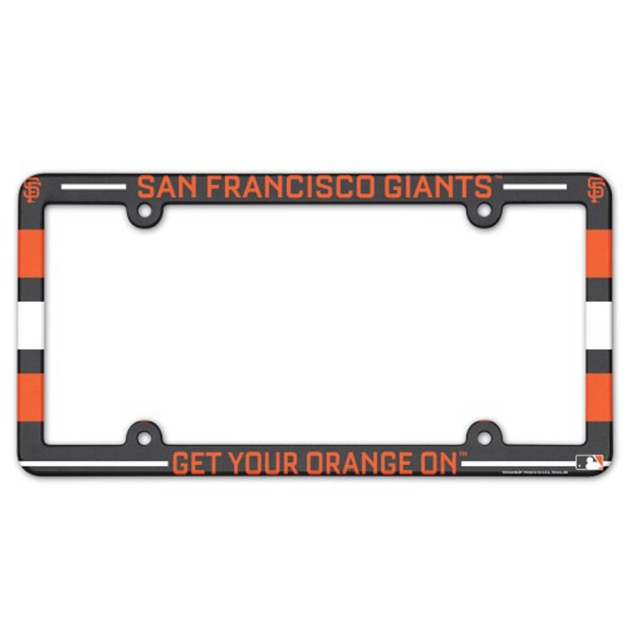 Full Color License Plate Frame that are usable as a fan decoration on the outside of a standard car license plate, front or back. The frame is molded in durable plastic and top surface printed with a durable ink on the entire top surface. The design maximizes space for tab sticker clearance, but you should still check the legalities of frames in your state. Made in USA. Made By Wincraft, Inc.