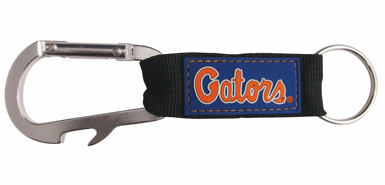 This carabiner keychain is the ultimate all in one game day accessory. It features a bottle opener, along with your favorite team's colors and name on a raised rubber patch. The keychain is approximately 6" long. Made By Pro Specialties Group