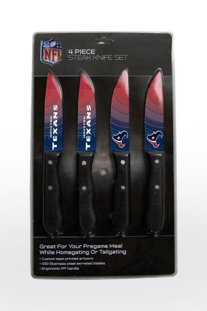 Perfect for your next game night celebration or pregame meal at home or outdoors! 430 stainless steel serrated blade. Custom team printed artwork. Ergonomic polypropylene handle. Double riveted. Easy to clean. Hand wash for best results. Not recommended for dishwasher. Made by The Sports Vault.