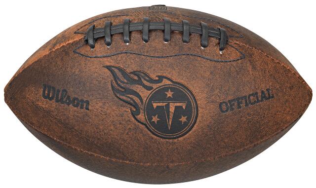 This NFL Officially Licensed 9 inch Throwback Football is made of composite leather and features composite leather stitching and laser stamped NFL team logo. Football holds two to four pounds of air and its sturdy construction helps hold its shape. Distressed brown color and black stitching help this football stand out. Can be used for decoration or to toss around. Made by Gulf Coast Sales.